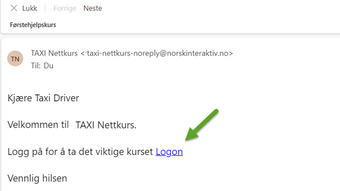 E-posten kan se slik ut. Deltakeren kan klikke på «Logon» lenka og slipper dermed å huske brukernavn og passord.
