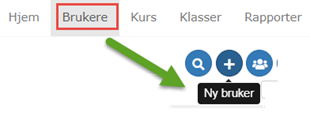 Klikk på «Brukere» og deretter på + tegnet for ny bruker. (Skal du legge inn mange brukere så er det bedre å bruke Excel-importen).