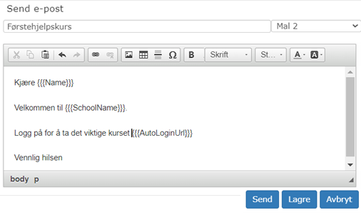 Når du har lagret opplysningene om deltakeren kan du invitere på flere måter. Dersom vedkommende har en epost adresse anbefaler vi denne: