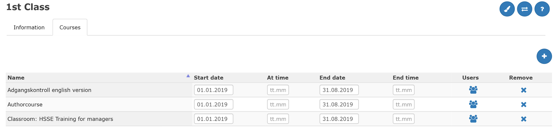The class in our example has 3 courses. You can also set the date - when the courses should appear or disappear. It looks like this: