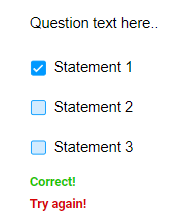 Default Correct | The first item/ statement is set default as “True / correct”. | |