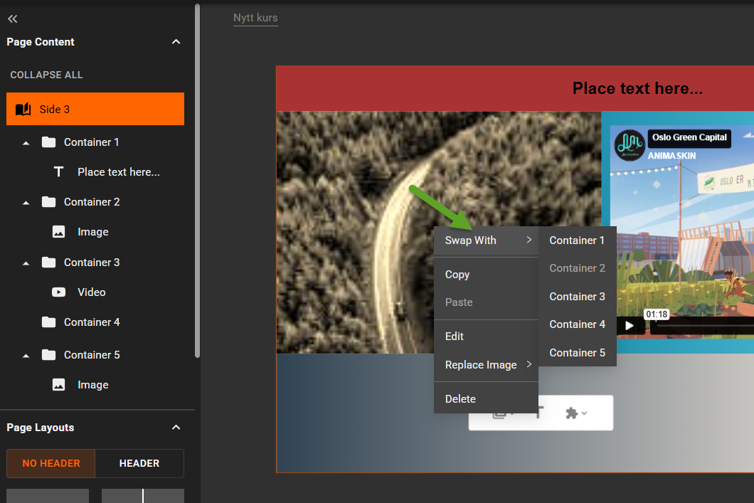 If you want to rearrange the containers just “right click” on the container and choose witch container you want to swap with.