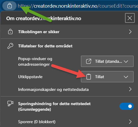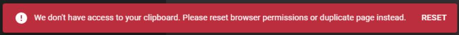 If you copy a page or an other object it may happen that the content won’t paste. If this happens the normal reason is that the browser prevents pasting. Click on the button left to the URL in the browser and click “Allow” to open up for pasting.