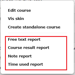 Users who have access to this feature: Administrator and Author Click the “School name” in the upper right corner in the main menu. Select “Reports” from the menu at the top right of the screen. You now enter the report screen and can choose which ...